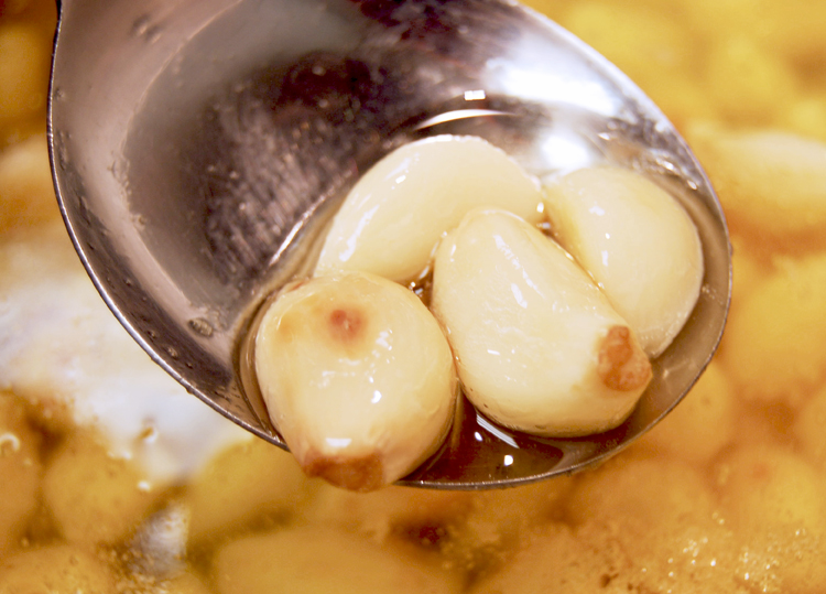 Garlic Confit is a staple in the Gascon larder and an excellent ingredient to have on-hand during the holidays. In this super easy recipe, fresh garlic is slowly cooked in duck fat which changes the firm, pungent cloves into soft, mellow, spreadable garlic goodness.