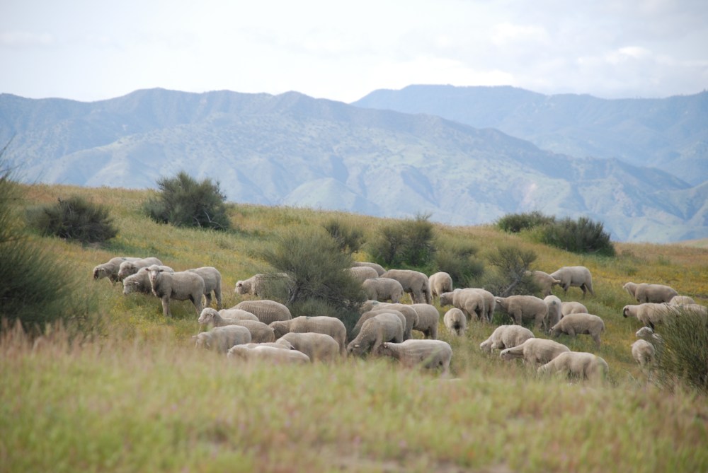 Sheep were one of the earliest staple animals as humans made the transition from hunters to farmers. Meat, milk and wool all come from this useful, relatively small ruminant, making it most likely to succeed as one of the first domesticated animals. And sheep graze happily on meager pasture, so they can be reared in marginal, rocky areas. Also going for them (or their shepherds) is their flocking behavior. It does make it easy to keep track of them when they are out in pasture.