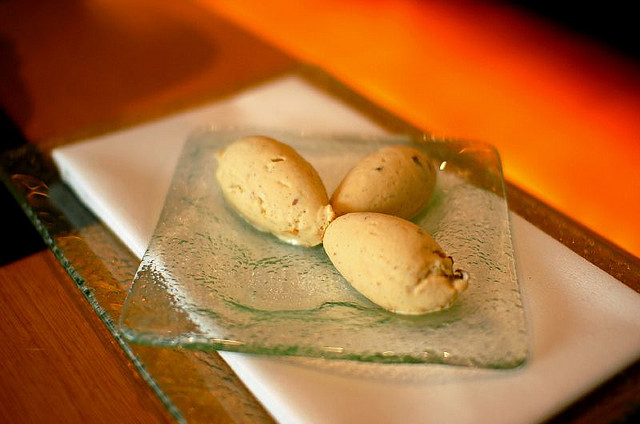 7. To serve, scoop out ice cream, top with an extra prune, and drizzle some Armagnac over it.